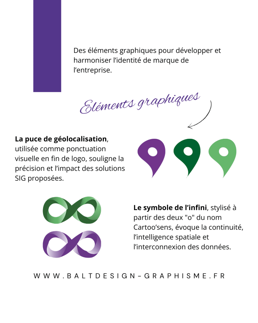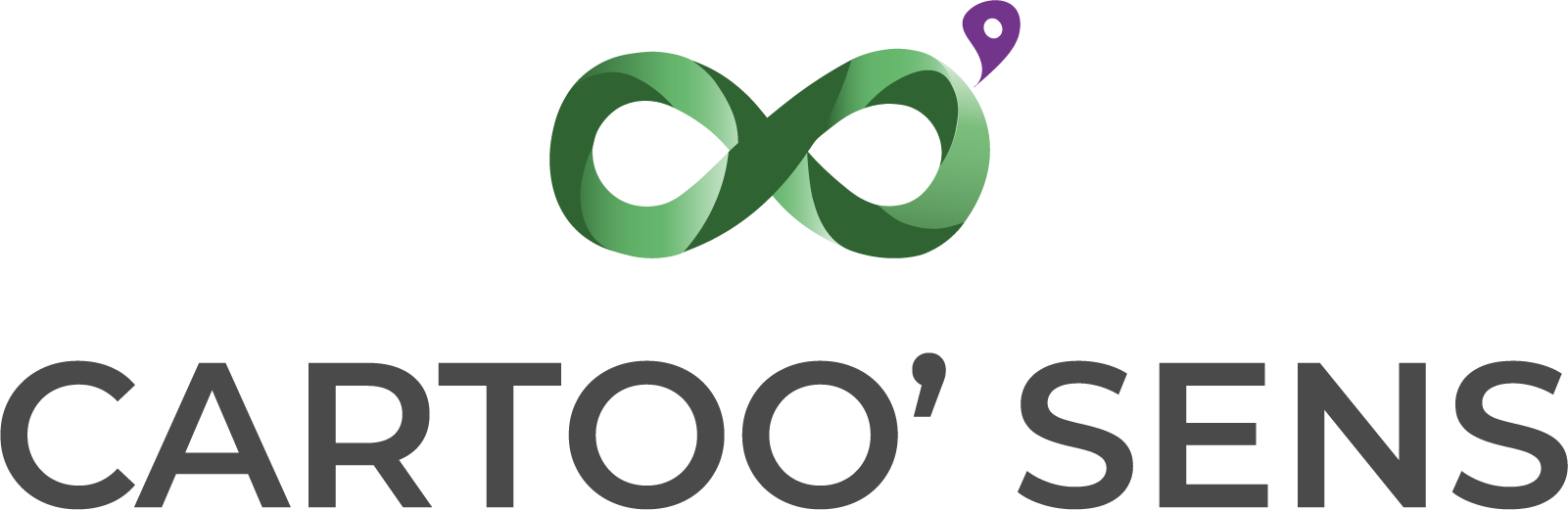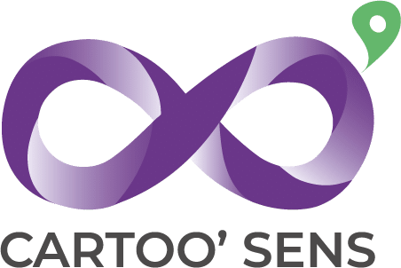 Le symbole de l’infini, stylisé à partir des deux « o » du nom Cartoo’sens, évoque la continuité, l’intelligence spatiale et l’interconnexion des données.